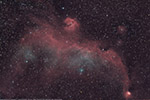 Der Kampf zweier Drachen im Sternbild Altar (Ara). Ihr Kampf ist dennoch nur eine Illusion aus Staub und Gas etwa 4000 Lichtjahre von uns entfernt. Die Region ist ein sehr aktives Sternentstehungsgebiet mit jungen heißen Sternen, umgeben von kosmischem Staub
