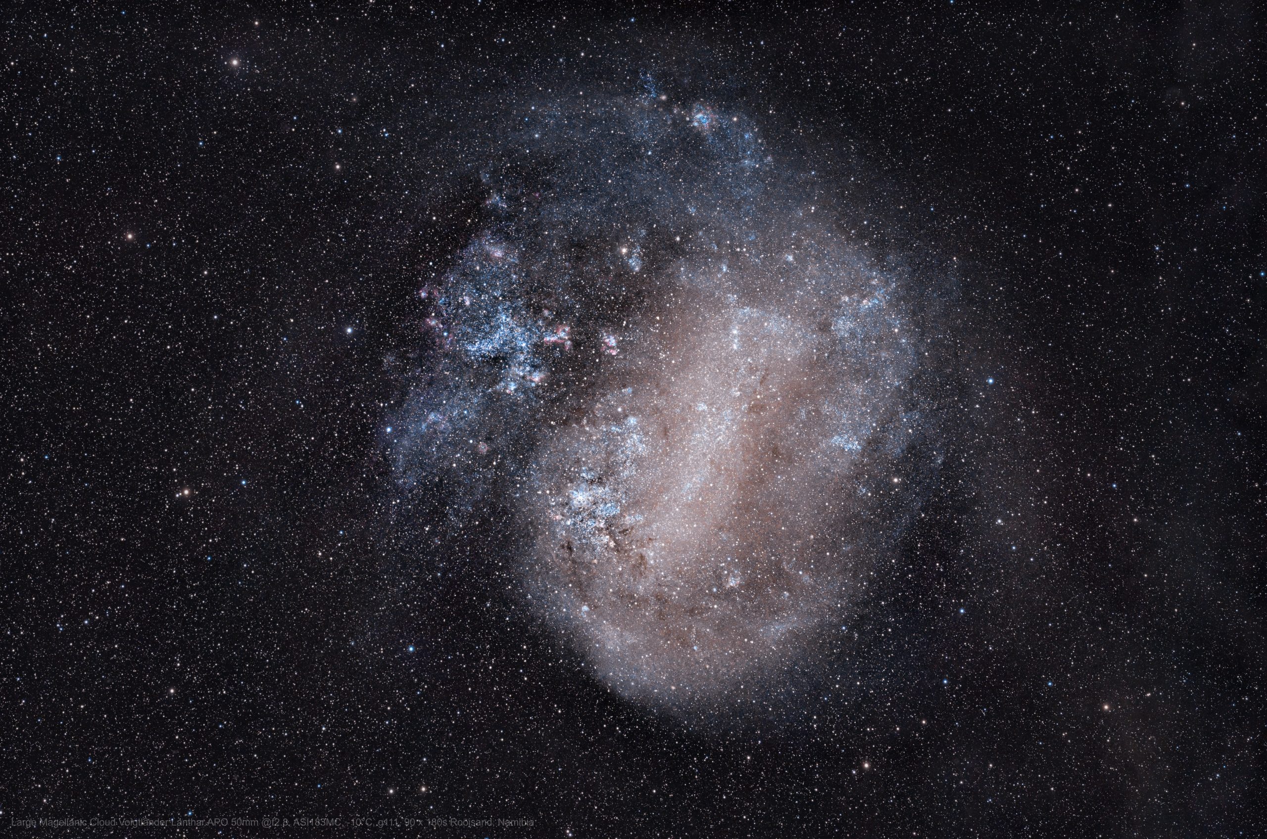 Die Große Magellansche Wolke ist die hellste Nachbargalaxie unserer Milchstraße. Simulationen berechnen, dass sie wahrscheinlich in ein bis vier Milliarden Jahren mit unserer Milchstraße kollidiert.